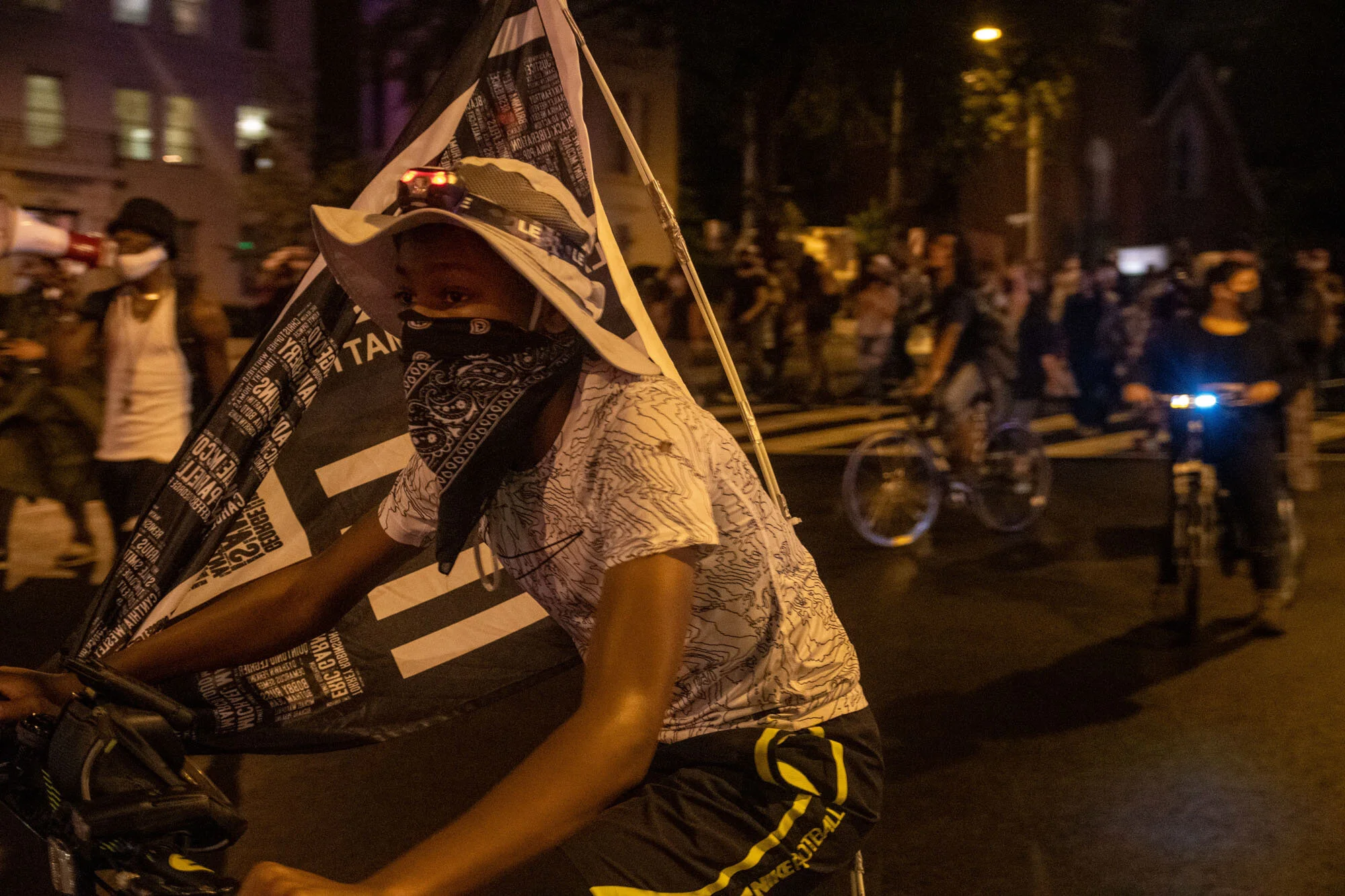 For nearly 12 hours, demonstrators marched for miles, taking over the city’s streets. Flanked by police — a standard procedure during protests — residents marched through the swanky Georgetown neighborhood and shut down the Francis Scott Key Bridge. Kids on bicycles led the group, as demonstrators waved their placards, calling for racial equality in the District.